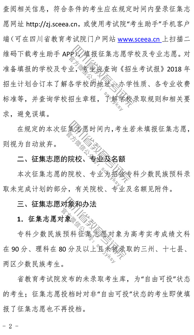 关于普通高校招收专科少数民族预科录取未完成计划院校征集志愿的通知