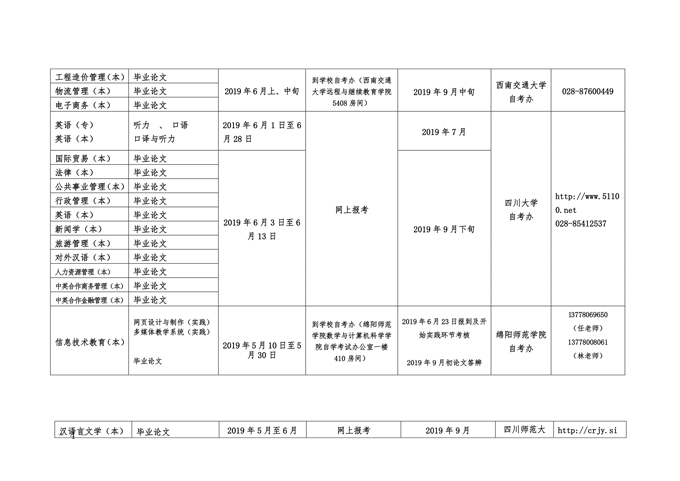 为做好2019年下半年自学考试实践性环节考核(考试)和毕业论文(毕业设计)答辩工作,促进自学考试规范化管理,现将有关事宜通知如下: