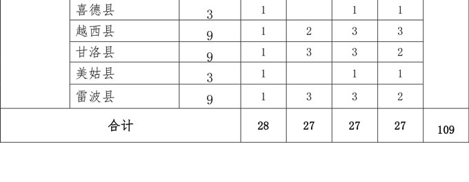 根据“三州一市”深度贫困县需求,2019年定向委培名额共109人,其中乐山市13人、甘孜州28人、凉山州68人。培养专业为临床医学(专科),学制三年。由西南医科大学、成都中医药大学、川北医学院和成都医学院4所高校承担培养任务,其中西南医科大学培养28人,成都中医药大学、川北医学院、成都医学院3所高校各培养27人。各高校在核定的2019年招生计划编制内分专业计划。定向委培名额和高校培养计划见附件。