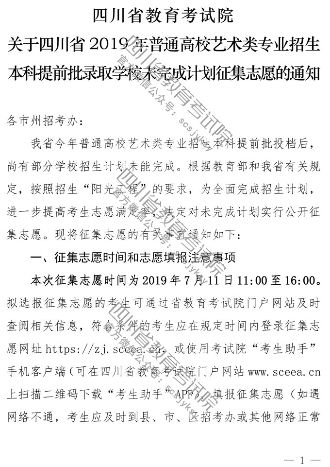 日期:2019-07-11 11:45:26 | 来源:四川省教育考试院
