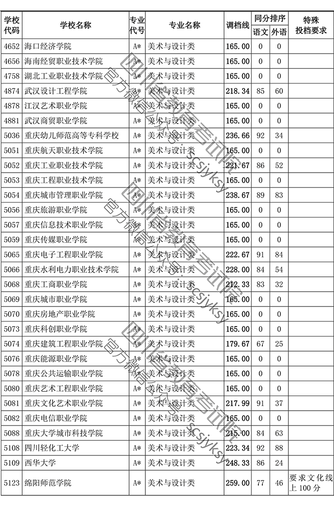 四川省2019年普通高等学校艺术体育类专业招生专科批调档线