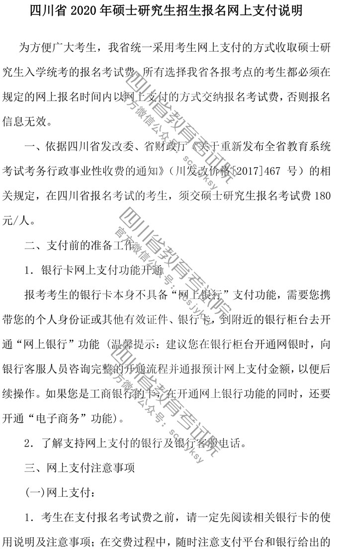 四川省2020年全国硕士研究生招生考试网上报名公告