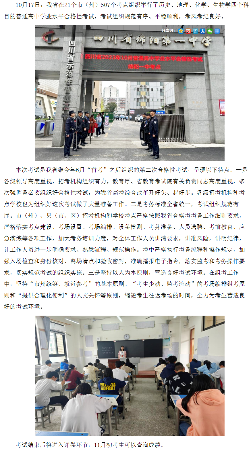 我省2023年10月普通高中学业水平合格性考试圆满结束