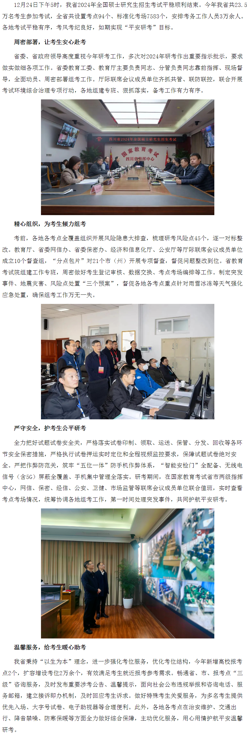 四川省2024年全国硕士研究生招生考试平稳顺利结束